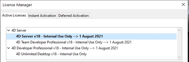 Over a long period of time, it may be common to have multiple types of licenses in the license folder. However, 4D can only choose 1 main developer license and 1 main server license at a time which is indicated by the bold text.