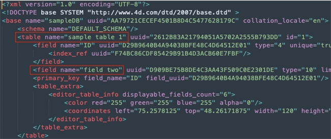 - Open 4D and create a new structure based on the modified XML (New > database from structure definition)