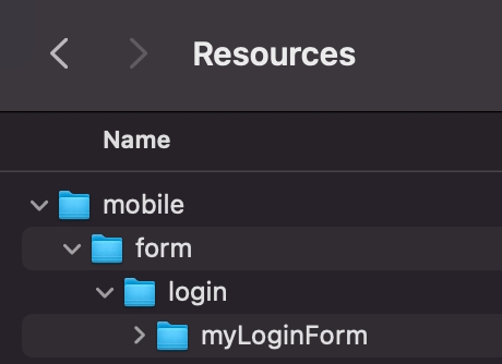 4D for iOS allows for the use of custom login forms. If you have created your own custom login form, the following describes how to add it to your mobile project. First, inside the Resources folder of your 4D application, create a /mobile/form/login directory. Then, put your custom login template inside the login folder.