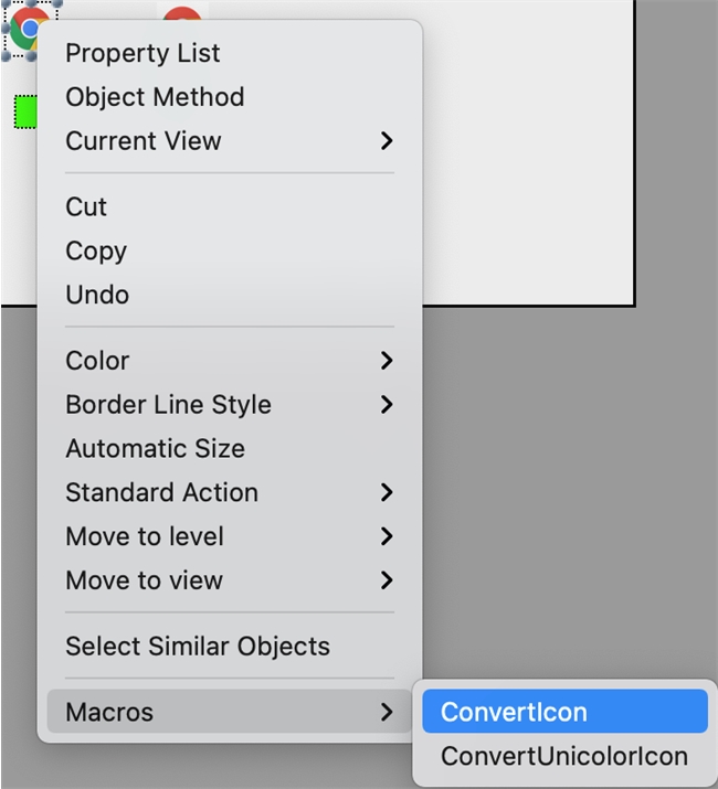 To use the convert macro, simply select a invisible button and static picture, right click, Macros > ConvertIcon.