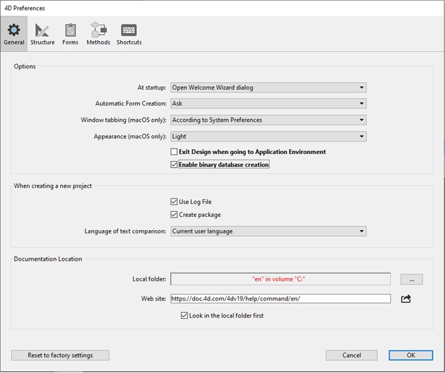 When using 4D v19, you may or may not have noticed that 4D will default to creating a new project database under the File > New menu. You may also have noticed that there isn't any option to create a binary database.
