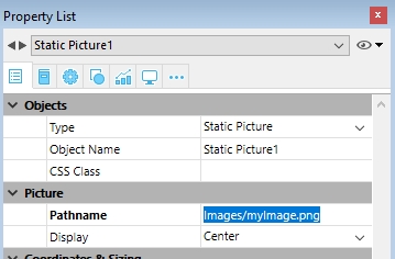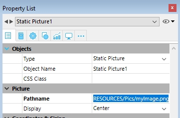 For the following example the image is in the "Pics" folder is located in the "Resources" folder", so it can be referenced with: