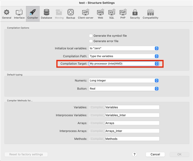 When using the latest Apple M1 chip, it's a good thing to note that the compilation target option in the settings is only avaiable in project mode and not avaiable in binary mode in v19.