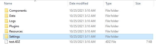 In order to modify the settings in the compiled .4DZ file, make sure to move the Settings folder from the original project app to compiled root directory.