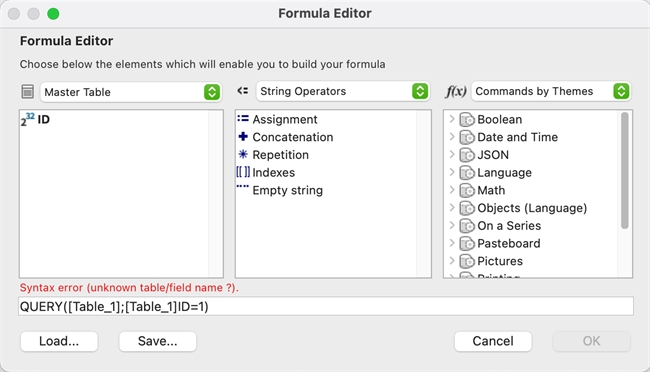 Now users should be able to use commands such as QUERY in the formula editor. Be cautious of which users you give access to 4D commands and project methods. For example, a query inside a report could change the current selection of the reported table.