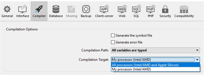 To compile a database for Silicon, the database must be in project mode and the database has to be compiled on an Apple machine. It does not matter if the machine is not equiped with Silicon, because the compiler requires XCode.
