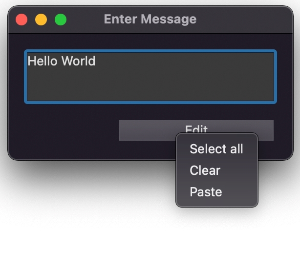 For example, a menu is created with the Select all, Clear, Copy, Cut, and Paste standard actions. In the image below, the menu items associated with the Copy and Cut standard action are hidden by default because there is no text highlighted so there is nothing to Copy or Cut (ie. cannot be invoked).