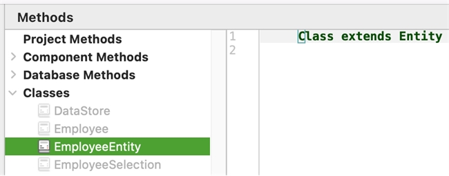 EntitySelection Class: “EmployeeSelection” & “Class extends EntitySelection”
