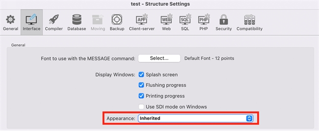 In 4D, there are actually three levels of appearance settings found when running project mode.