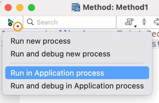 In v19 R6, the new HTTPRequest class allows developers to send HTTP requests with callback functionality. When testing callbacks, run the method sending the request in the Application process. Otherwise, the process will die at the end of the method, and the callbacks will not be triggered. Methods are set to run in “new process” by default (indicated by the “play” button with cog icon). To run in Application process, click the down arrow to open the dropdown list and select “Run in Application process”.