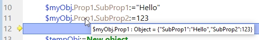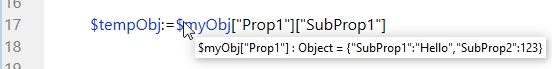 A additional feature when using dot notation, is that the value of the hovered property can be seen without showing the entire object.
