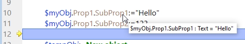 A feature of the source code pane is the ability to view the values of variables at the current execution point by hovering the mouse cursor over a variable. Doing so will display a tool tip which shows details in the following format: