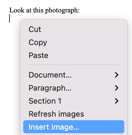 When sending a WP document with images in it, make sure that the images are inserted as inline pictures, not as background or anchored pictures. Otherwise, the images may be not included in the email. To insert images into the document inline, use WP INSERT PICTURE. An image can also be inserted inline by pasting it into the WP area, or selecting “Insert image…” from the contextual menu.