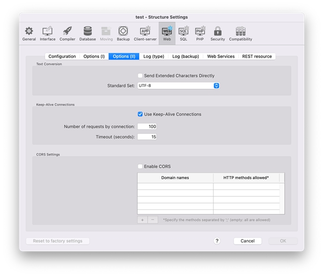 Next, go to the Structure Settigs of your project > Web > Options (II)