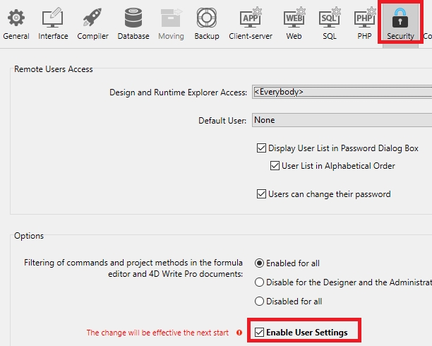 A feature of 4D is the ability to enable the use of User Database Settings.