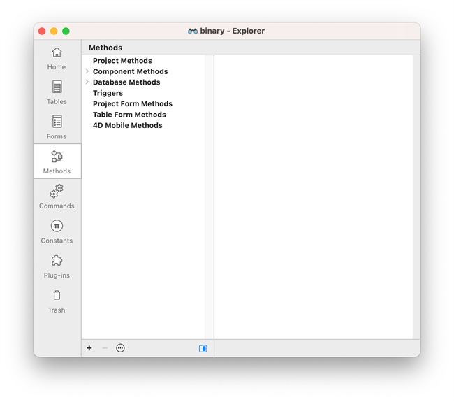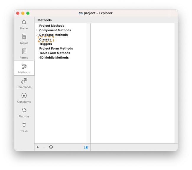 In binary mode, there will not be a Classes category under Methods: