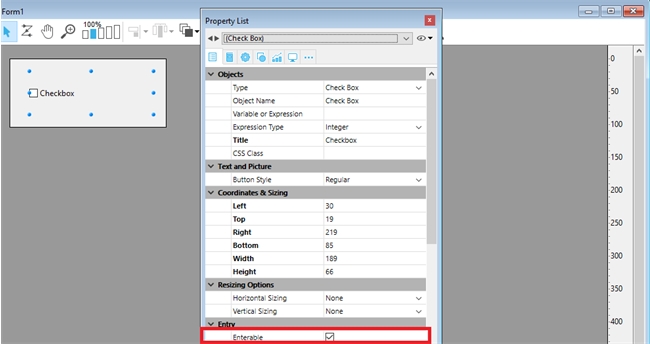 When upgrading a database over to v19, one change to note is that OBJECT SET ENTERABLE can now be used on check boxes. This change was added to prep the v19 database for project mode as check boxes also display the "Enterable" property in the property list.