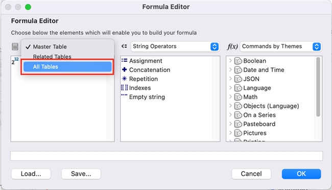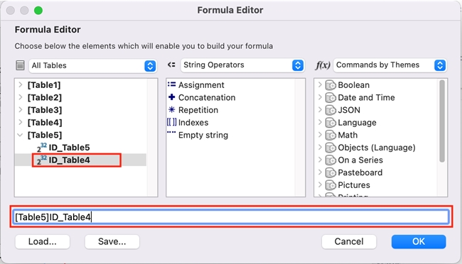 - Select the table you would like to retrieve a field from, and double-click it. Its fields should appear on an indented level. Double-click on the field you would like to add as a column, and it should appear on the formula line.
