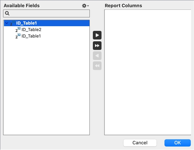 When using the "Fields" function of the Quick Report component, it can be difficult to look up deeper levels of related fields. For example, a database can have 5 tables with 5 levels of related fields; however, not all fields appear in the "Fields" window (see below).