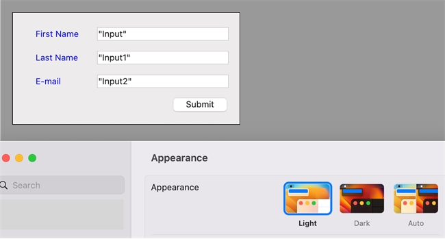 With the growing popularity of dark mode among modern applications, it is important to ensure that user interfaces are easy to read even with a darker color scheme. For Mac platforms, you can set up different color palettes using style sheets and CSS media queries. Media queries apply different style declarations based on a condition; in this case, the color palette used in the 4D application will depend on whether the appearance settings on Mac is set to light or dark mode.