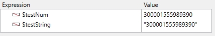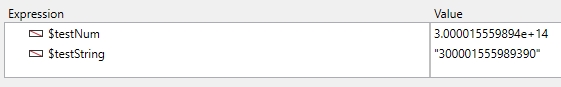 Note that the last "3" digit in $testString was rounded to 4 when converted to a num.