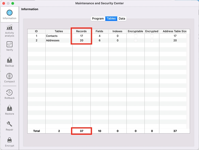 Go to the "Tables" tab, and from there, you can find general metrics on the tables you currently have in your database. This feature even tells you the total number of records you have throughout the entire database, along with other metric totals you may find useful.