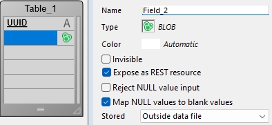 Table fields with type blob or picture will have an additional property to be stored "Outside data file".