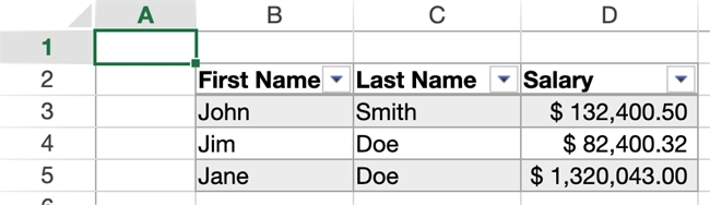 By calling the "ViewProArea", specifying a column, and a formatter, we can style the Salary column with the following code: