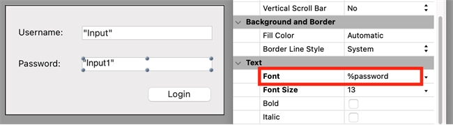 Based on the previous implementation, you can alternatively enter %password directly into the Font property.