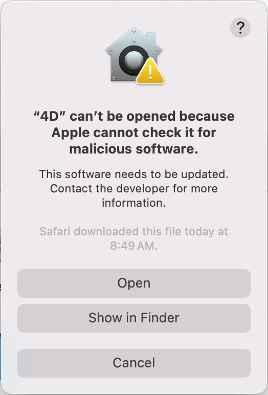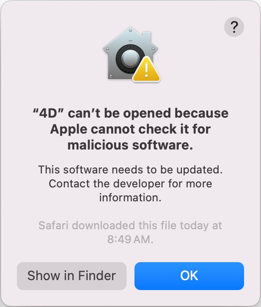Tech Tip: Error: "4D" can't be opened because Apple cannot check it for malicious software