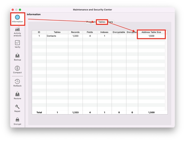 Of the 3 ways to find the address table size, this is the least efficient in terms of performance and space; however, using a allows you to also gather more information on deleted records.