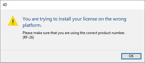 Scenario: you are registering a 4D product license, and you come across the following error dialog window: