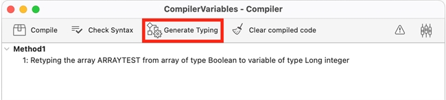 - Change the compiler method definition to match the change in data type. This is done within the compiler method itself. You must ensure the variable resides in the correct compiler methods (e.g., arrays belong in their own compiler method, interprocess and process variables have separate compiler methods, etc.)