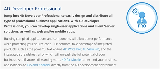 If you are not sure if you have the correct license, would like to obtain the 4D Developer Professional license, or upgrade your current 4D Developer Standard license, you may contact your sales representative.