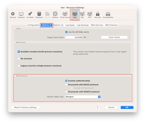 When working with 4D web server's access system through the On Web Authentication method, you may find that there are some values from parameters $5 and $6 that come up blank. Whether these parameters hold value is dependent on how the Web > Options (I) page is set up, found through the Database Settings menu.
