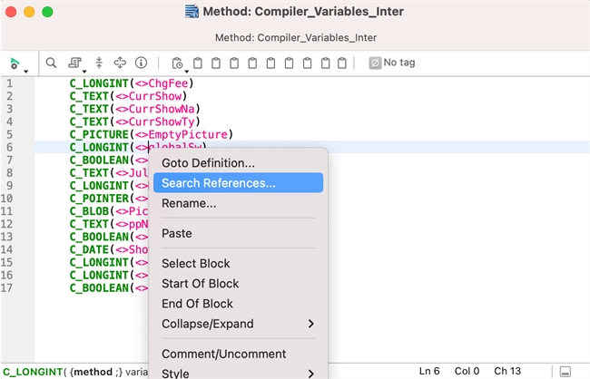 One of the first steps to replacing them is to find all instances of interprocess variables in the application. This could be done by searching for "<>" in Find in Design, but the results could contain irrelevant things such as variables that were commented out.