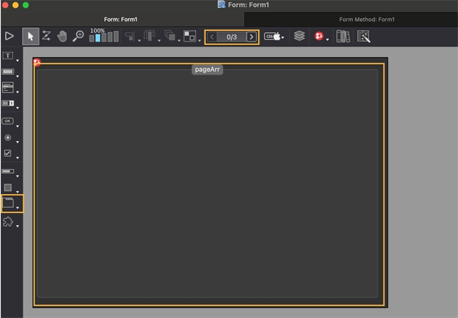 The first step is to make a form and add pages to it. Then add a Tab Control object to page 0