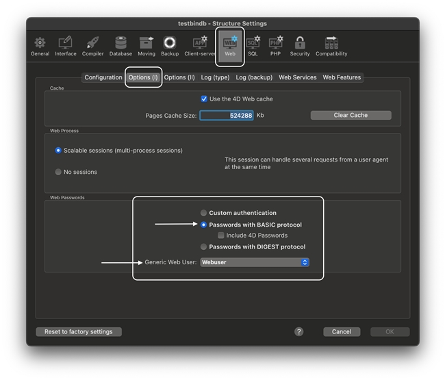 - This is the option that causes authentication to be required when requesting /4DSTATS, /4DHTMLSTATS, /4DCACHECLEAR and /4DWEBTEST