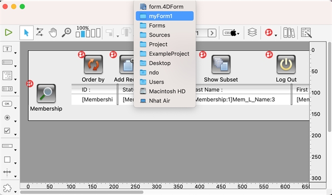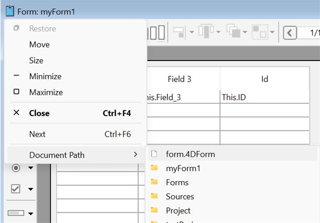 In a project application, for every form, method, class, etc., created in design mode there is a corresponding project file generated on the disk. For example, if a project form called “myForm1” is created, its project file will live in Project > Sources > Forms > myForm1 > form.4DForm.