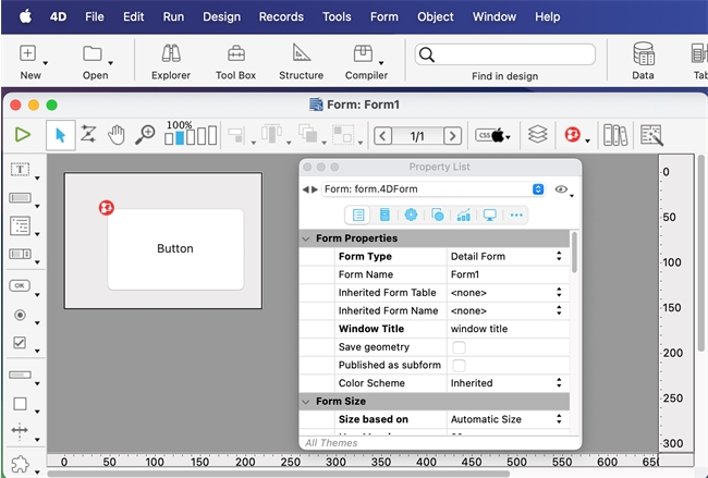 The operating system typically allows one of three settings to be applied, dark mode, light mode, and automatic which will adjust the mode based on the time of day. 4D is compatible with these modes and allows for the mode to match the OS or be set to a specific mode regardless of the OS settings.