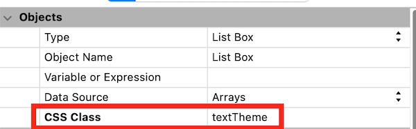 Afterwards, set the CSS option on the listbox to textTheme to set up the CSS page on it.