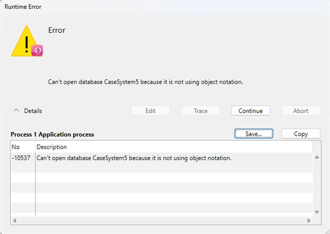 Tech Tip: Error -10537: Can't open database because it is not using object notation