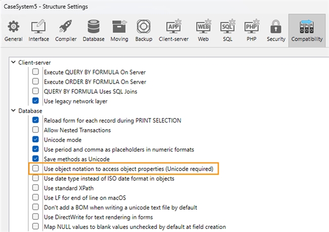 This may occur when the application is converted from a previous version on 4D Server. When initially launching it on 4D Server, a prompt may appear to allow temporary enabling of the object notation compatibility option: