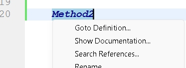 A valuable feature of the Method Editor is the ability to select items and search for their references or definitions.