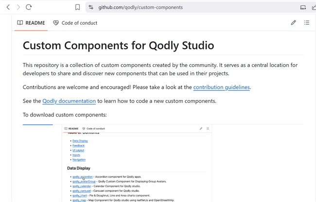 https://github.com/qodly/custom-components - Download the desired component as a .zip file and upload it to the project via Qodly Studio.