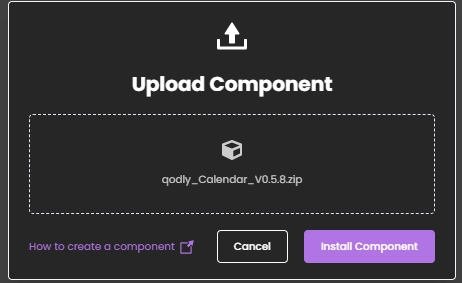 Upload the zip file : qodly_calendar_V0.5.8.zip in this example :