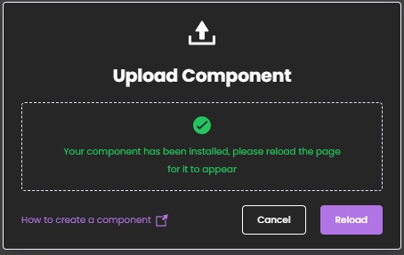 - Once uploaded, the component becomes available for use in Qodly pages like any built-in component.