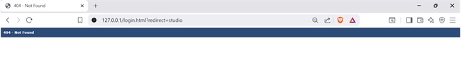 In Qodly Studio, a 404 – Not Found page may appear when previewing the application.