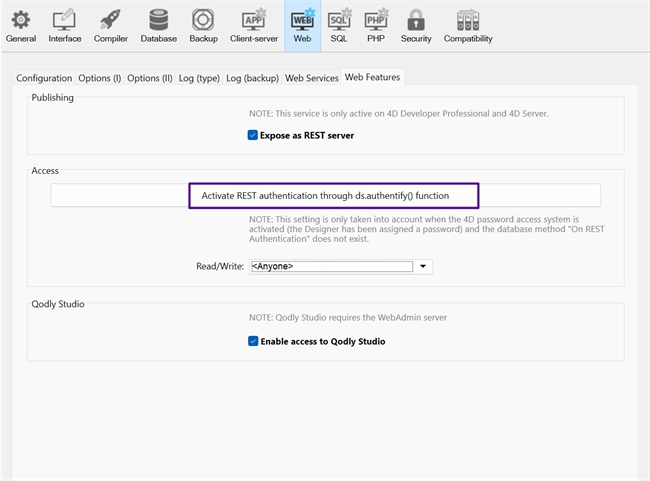 Tech Tip: Qodly Studio Preview: 404 Error Caused by Disabled REST Authentication Setting