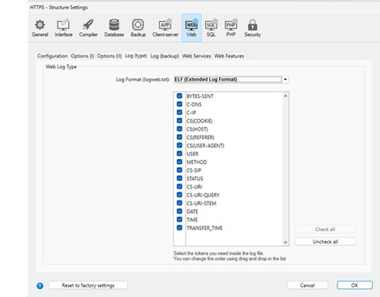 When asked to send web logs by the 4D team, it is always recommended to choose the ELF (Extended Log Format) format, as it provides more verbose logs.